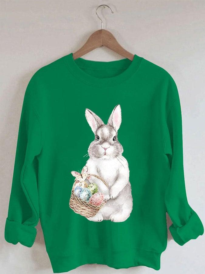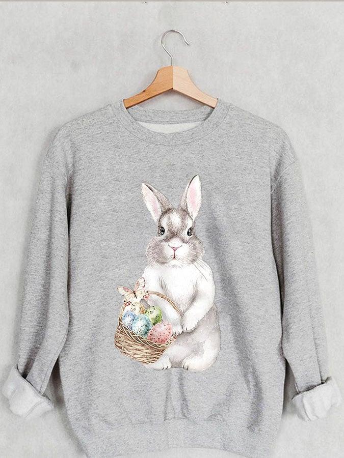 Women's Easter Bunny Print Round Neck Long Sleeve Sweatshirt