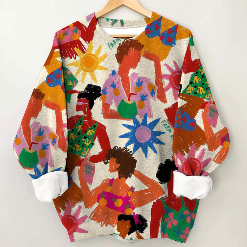 Woman's Art Print Long Sleeve Round Neck Sweatshirt