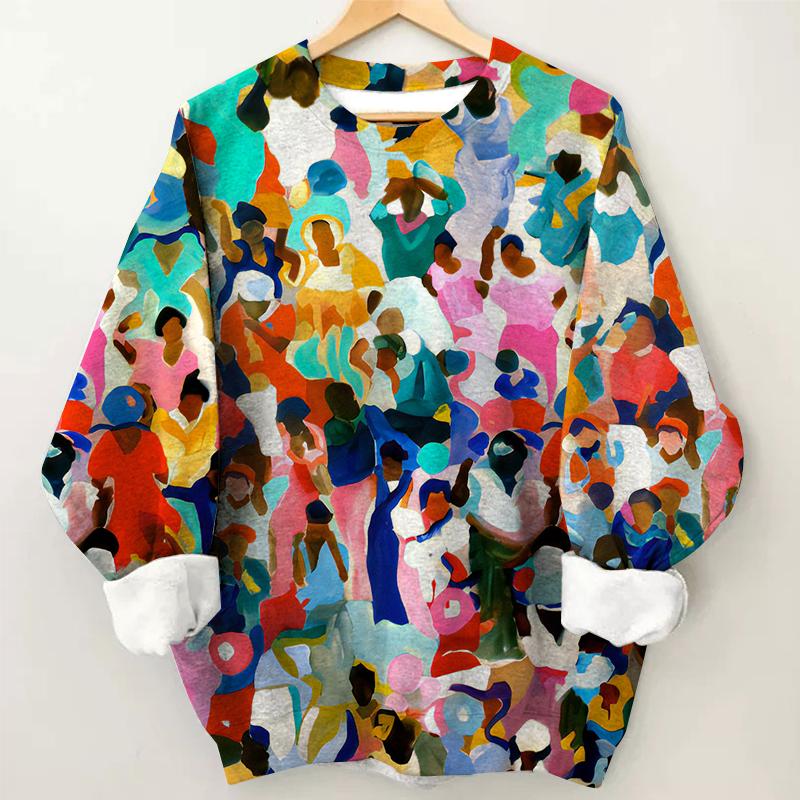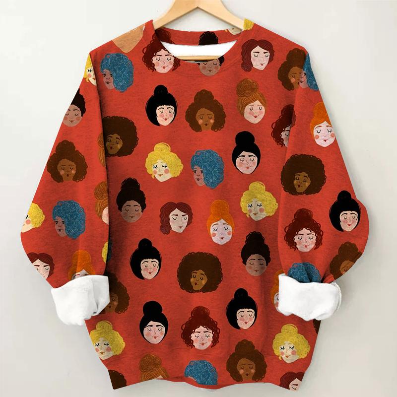 Women’s People Printing Long Sleeve Round Neck Sweatshirt