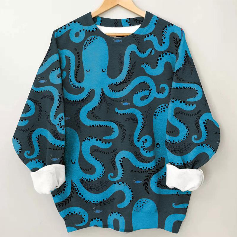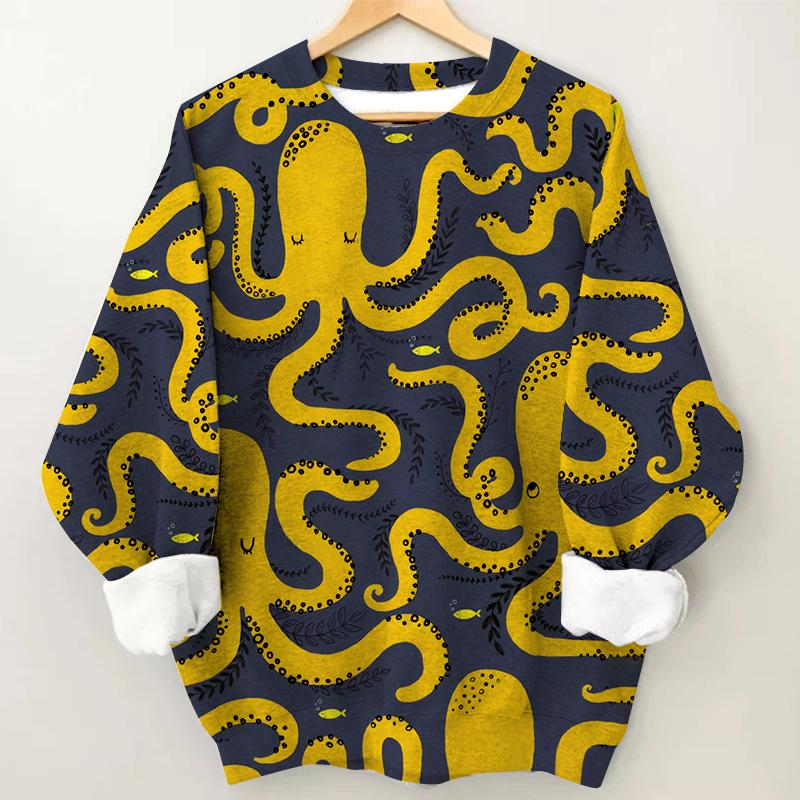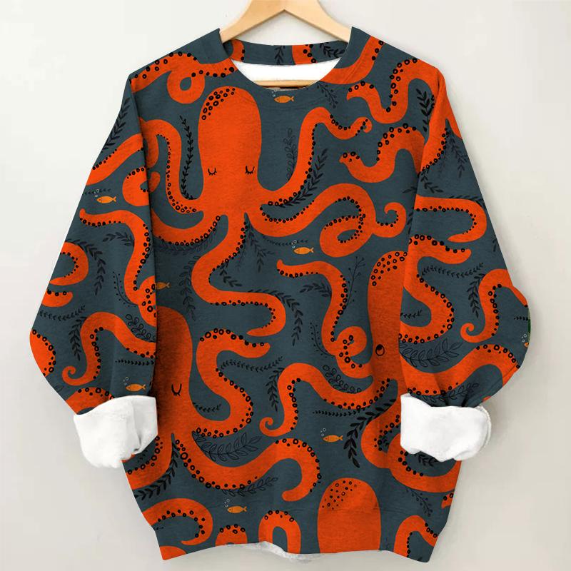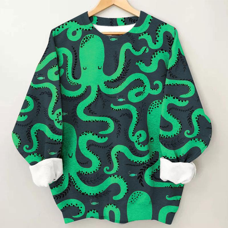Women's Art Octopus Print Long-sleeved Casual Hoodie