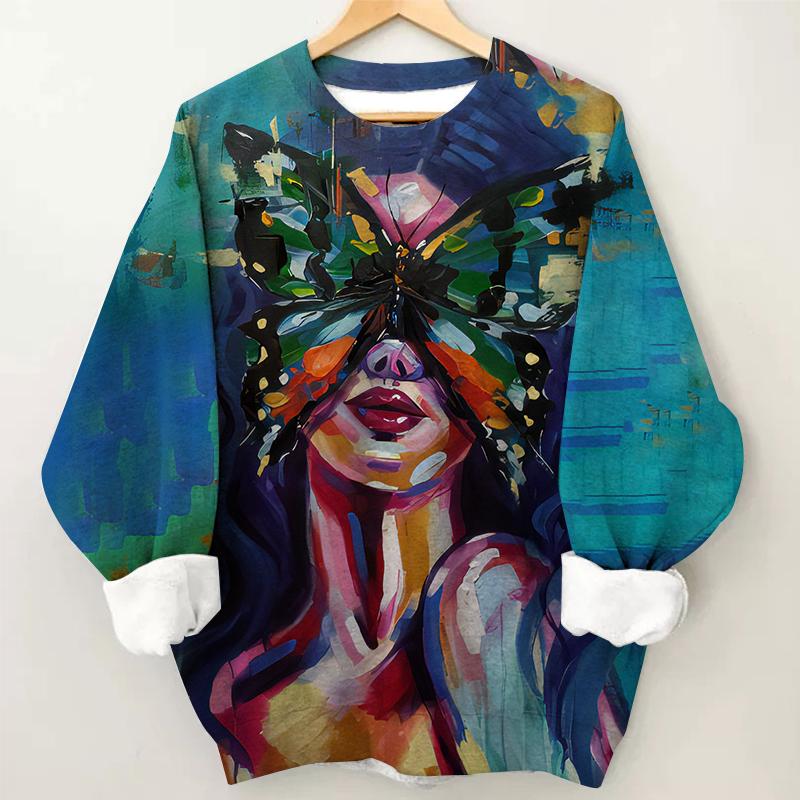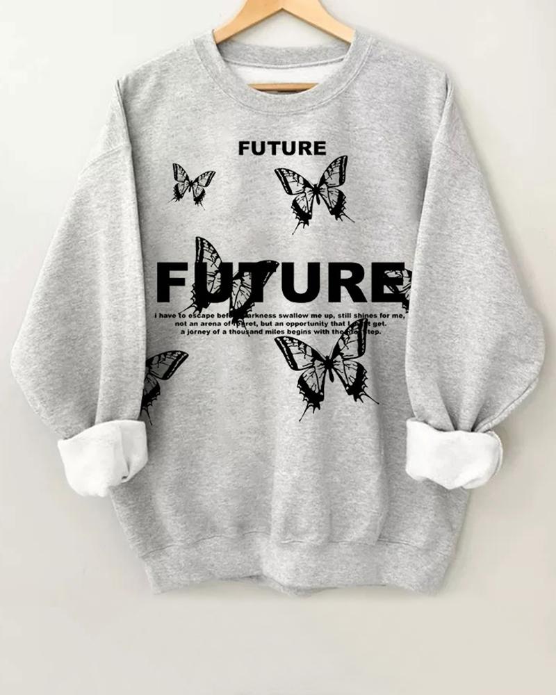 Women's Butterfly Future Print Long Sleeve Round Neck Sweatshirt