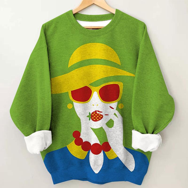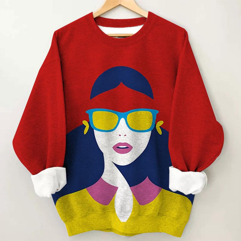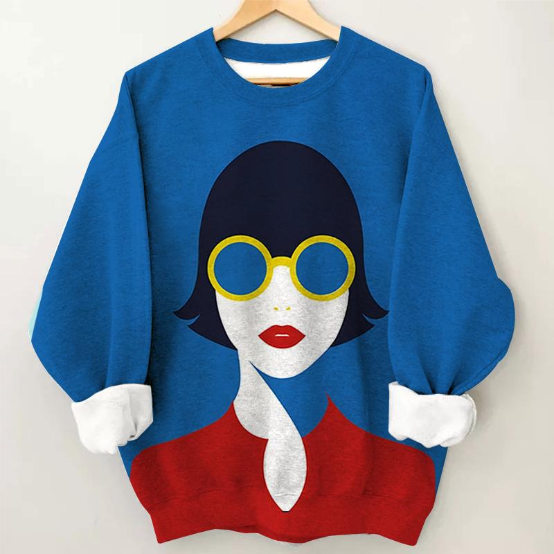 Woman's Funny Avatar Art Print Long Sleeve Round Neck Sweatshirt