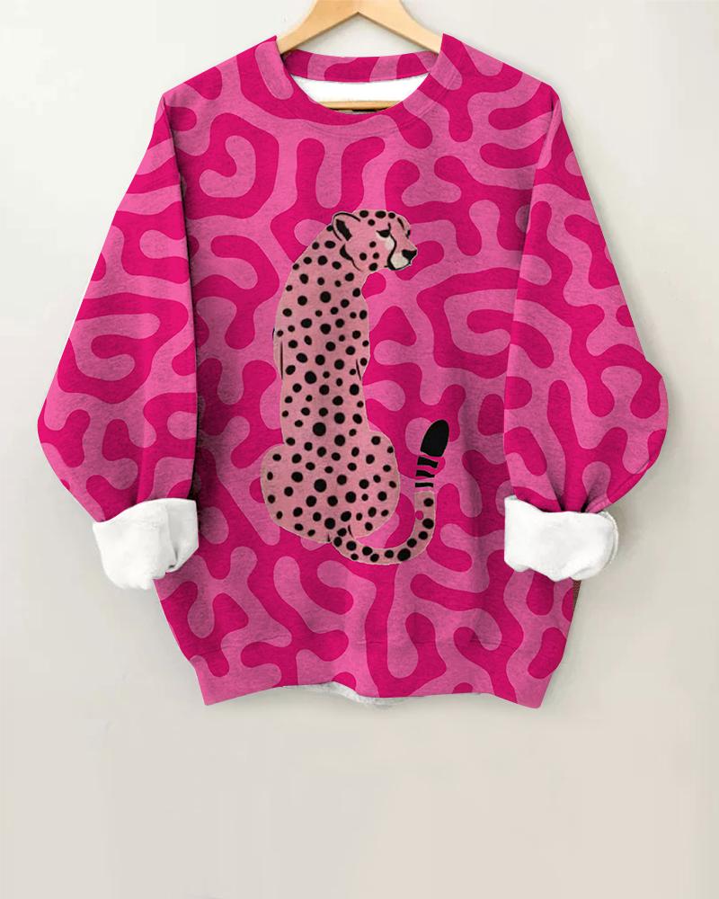 Women's Cheetah Print Round Neck Long Sleeve Sweatshirt