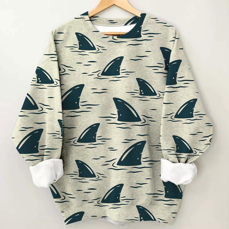 Women's Fun Big Shark Print Casual Long Sleeve Top