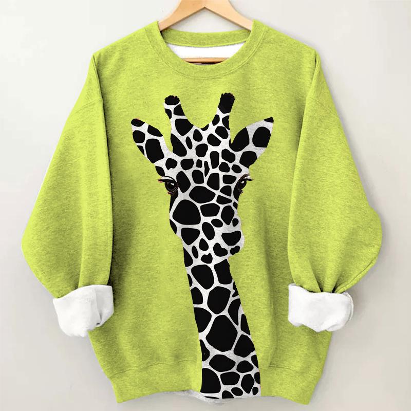 Women's Giraffe Print Long Sleeve Round Neck Sweatshirt - green