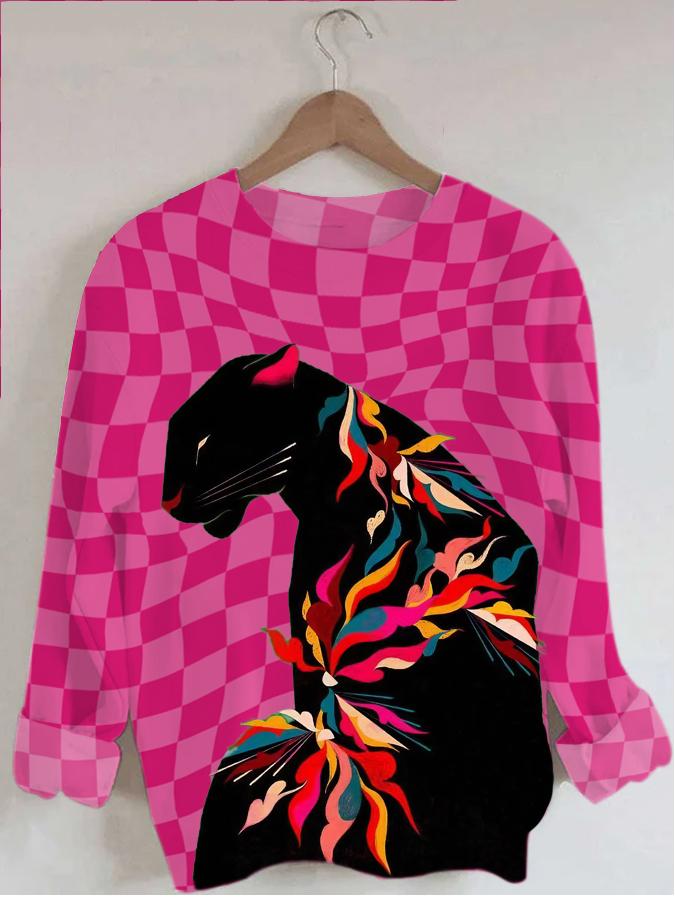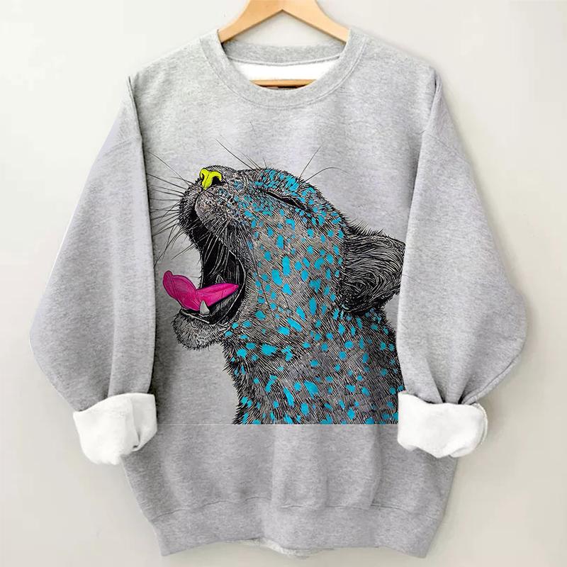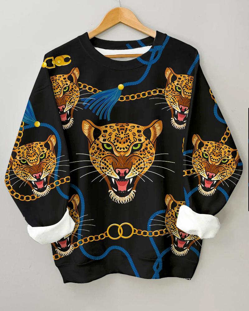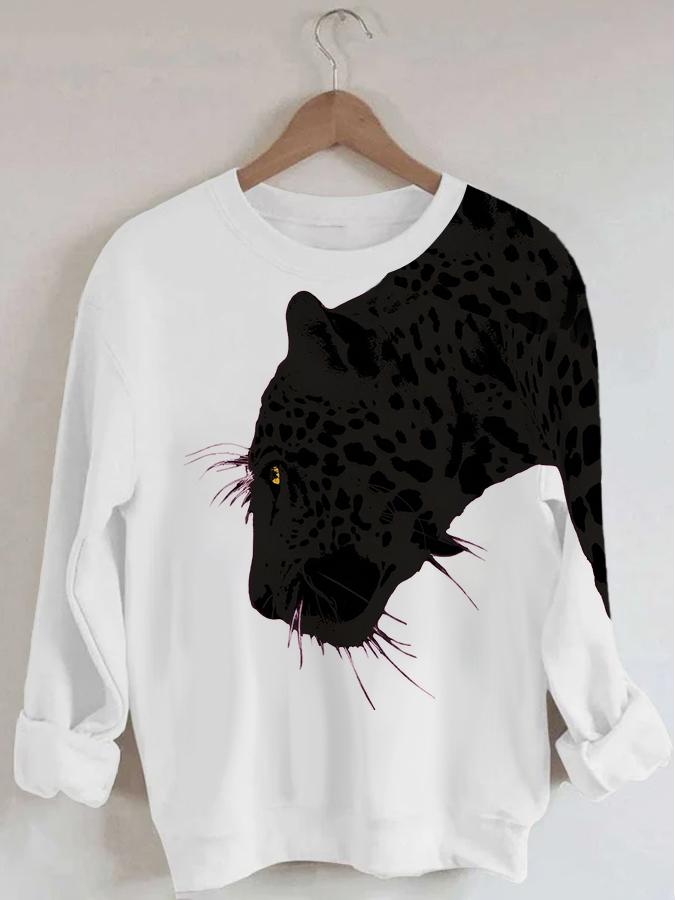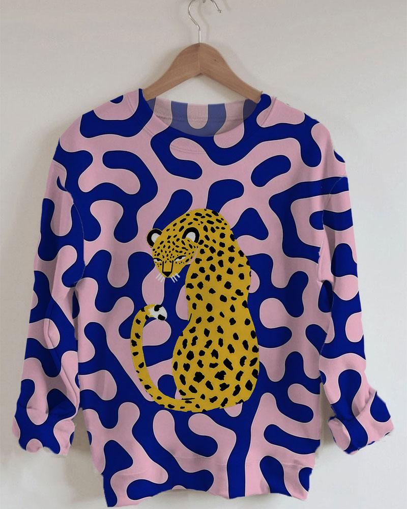 Women's Leopard Art Print Long Sleeve Round Neck Sweatshirt