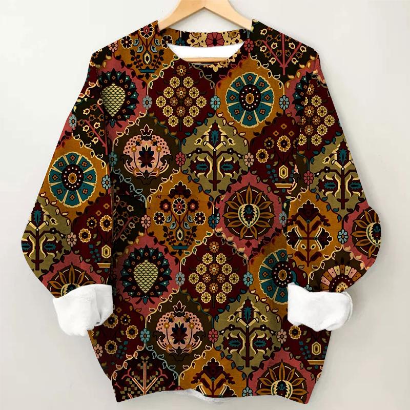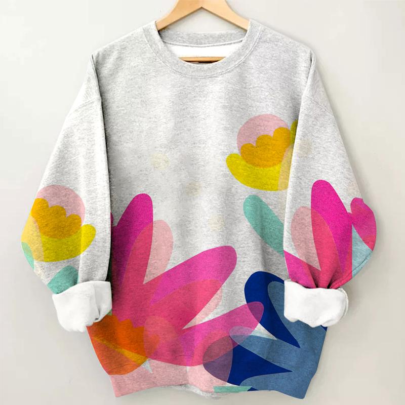 Women’s Flower Art Print Long Sleeve Round Neck Sweatshirt