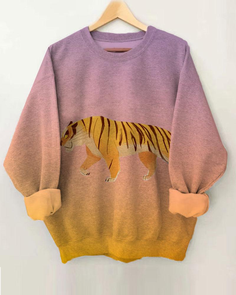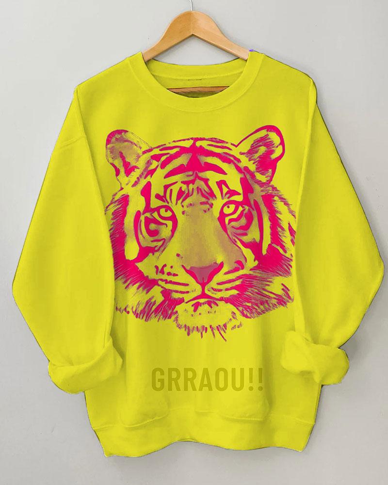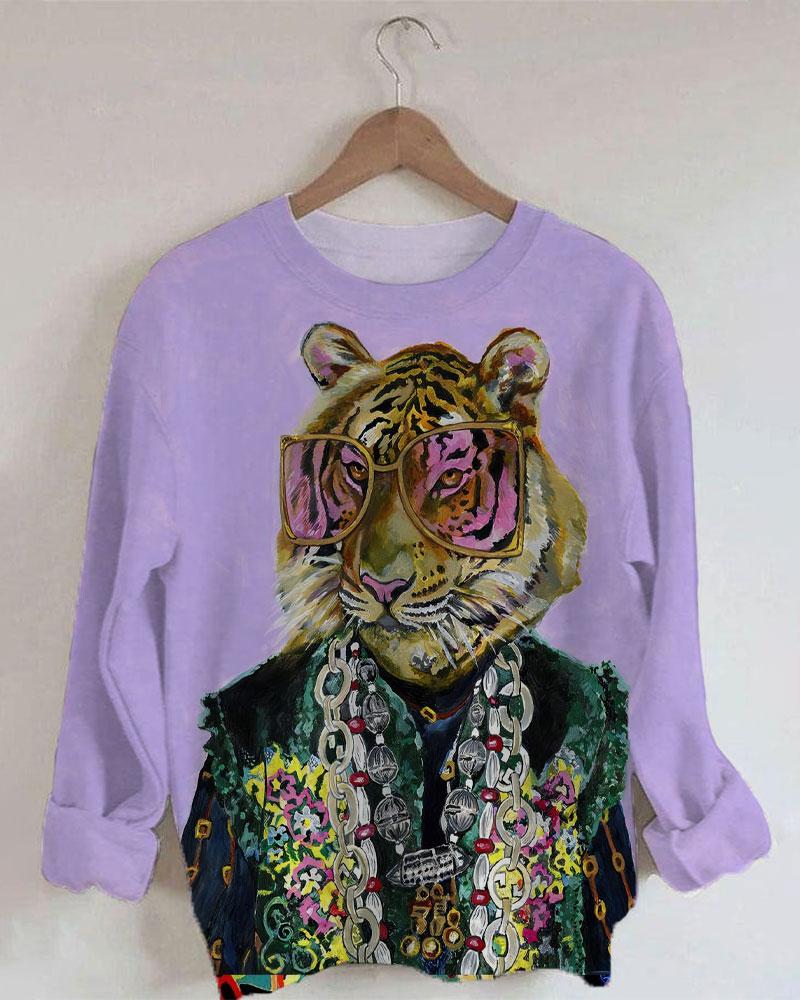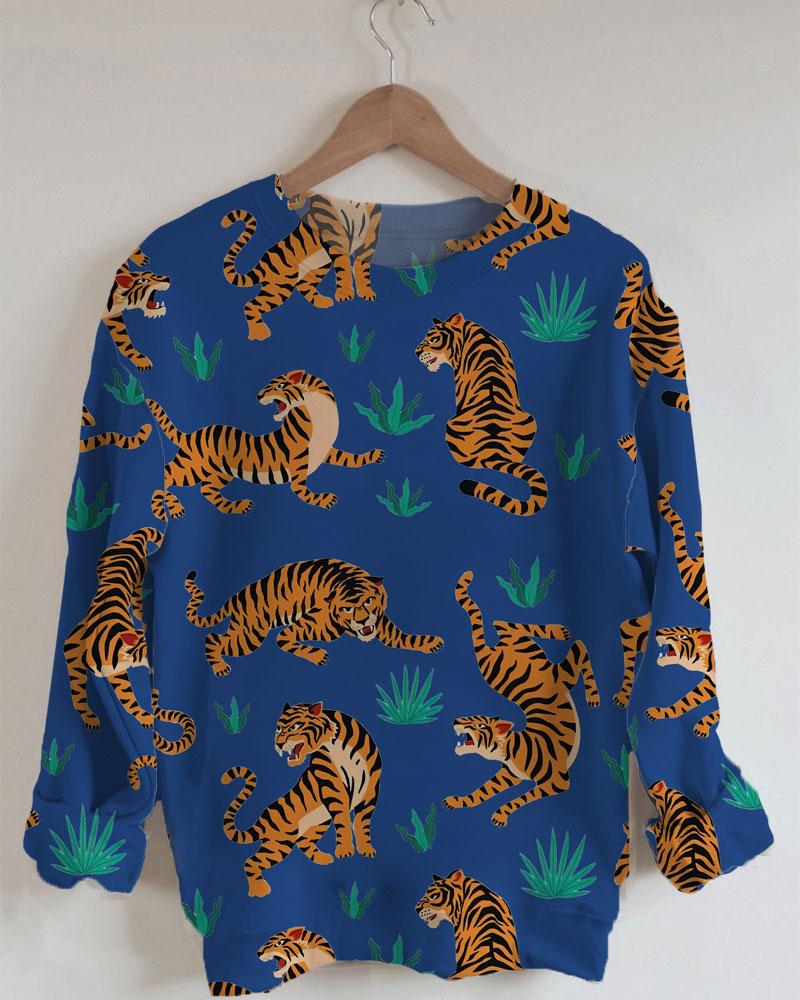 Women’s Tiger Printing Long Sleeve Round Neck Sweatshirt