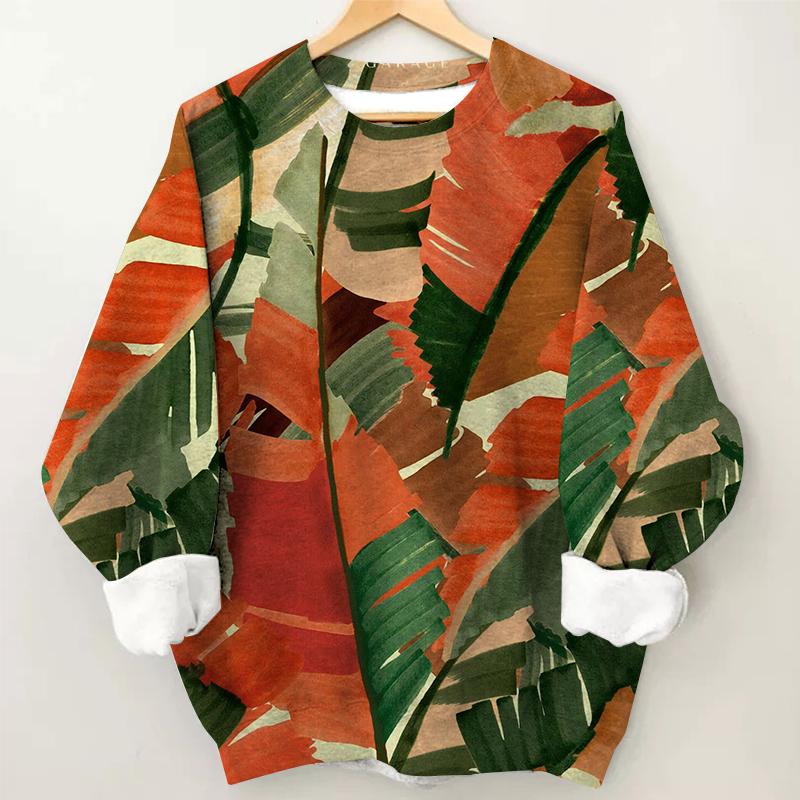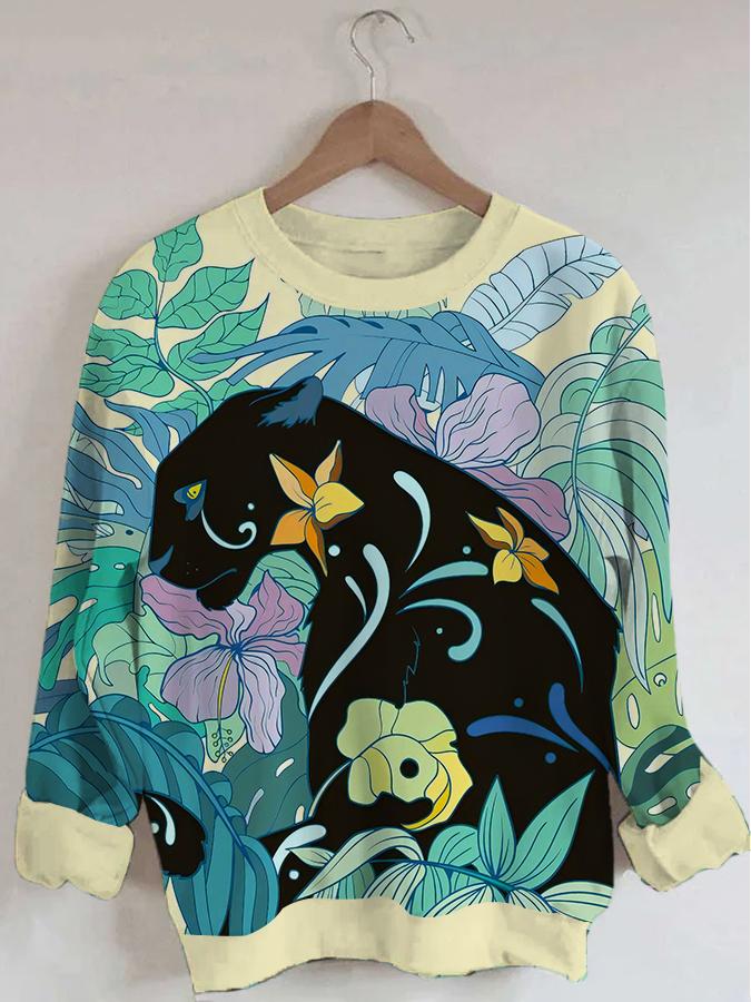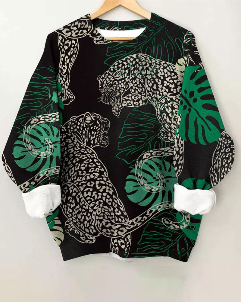 Women's Cheetah Leaf Print Long Sleeve Round Neck Sweatshirt