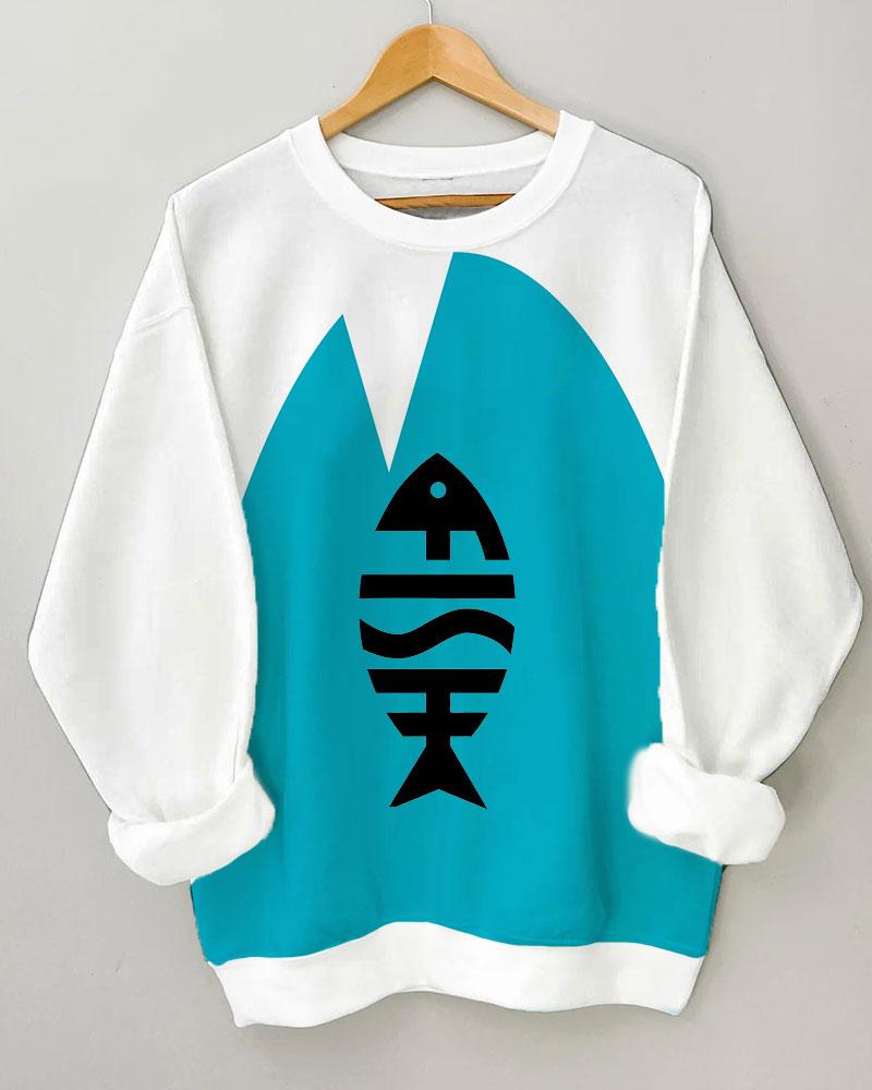 Women’s Fish Printing Long Sleeve Round Neck Sweatshirt