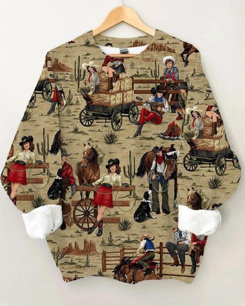 Women's Western Cowgirls Cowboy Yeehaw Print Sweatshirt