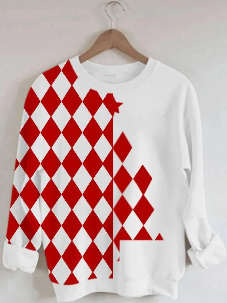 Women's Geometric Leopard Print Long Sleeve Round Neck Sweatshirt