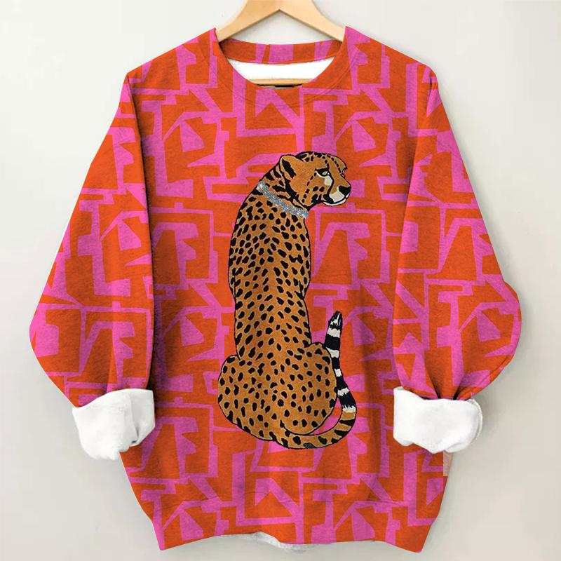 Women's Cheetah Print Long Sleeve Crew Neck Sweatshirt
