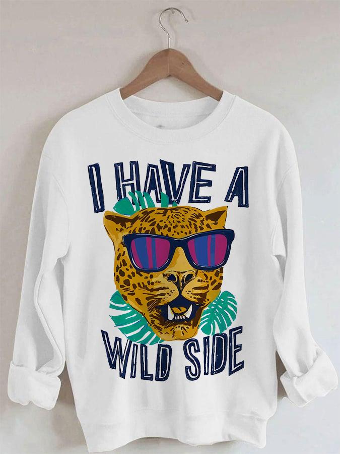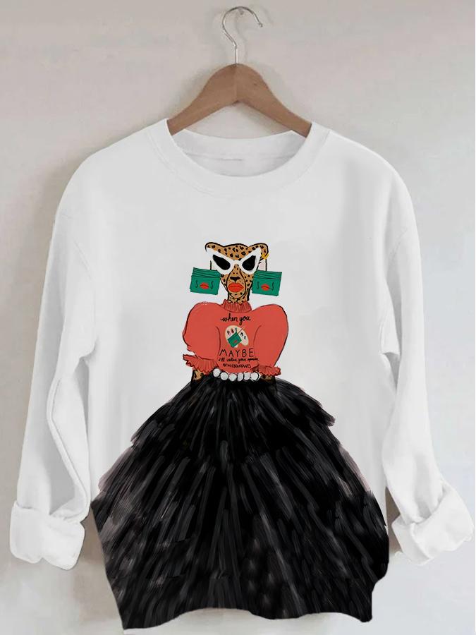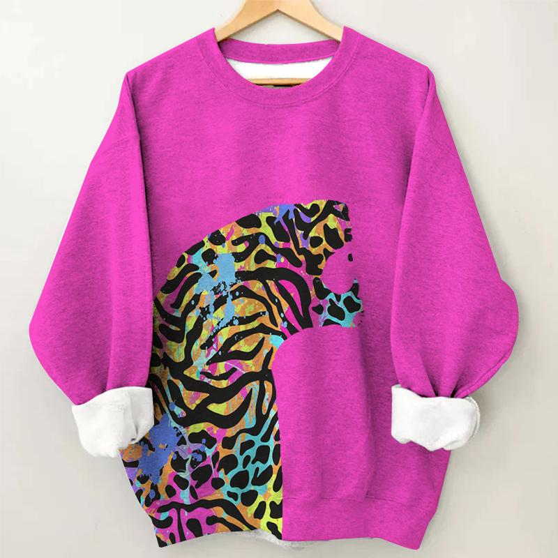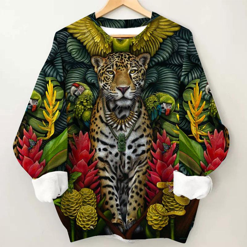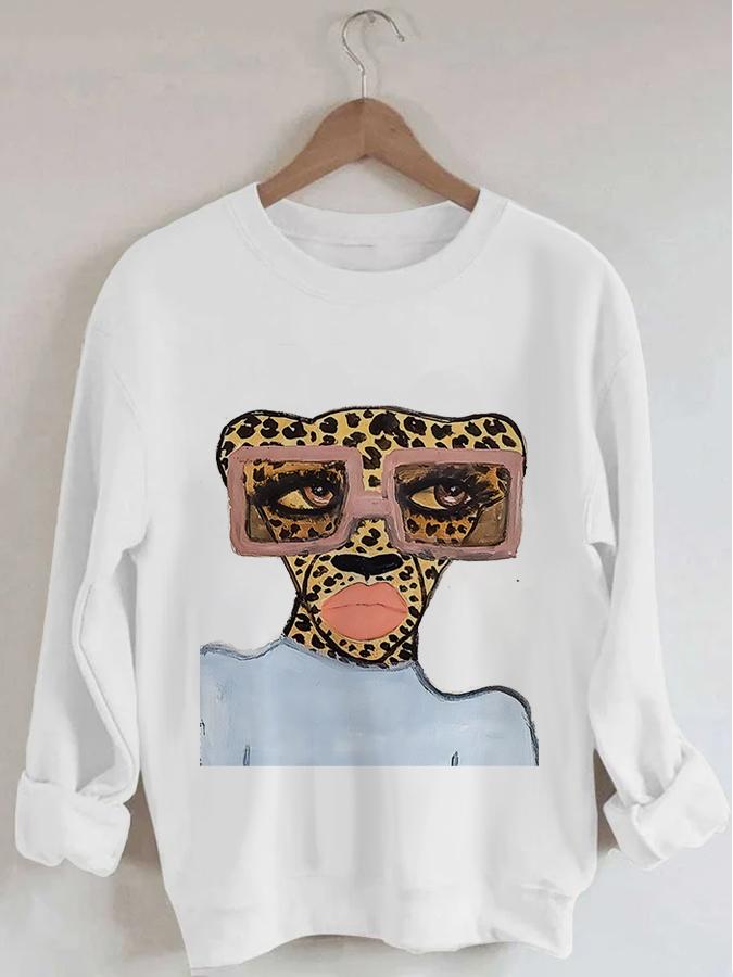 Women's Leopard Head Print Long Sleeve Round Neck Sweatshirt