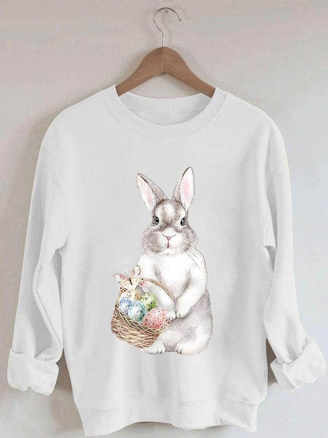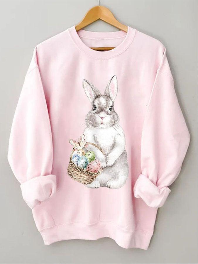 Women's Easter Bunny Print Round Neck Long Sleeve Sweatshirt