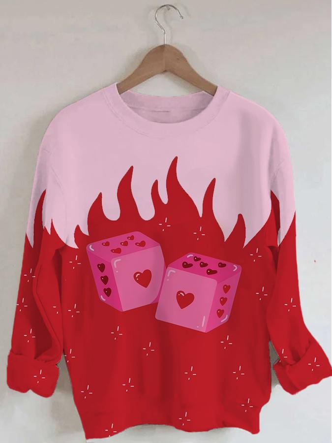 Women's Love Dice Art Print Long Sleeve Round Neck Sweatshirt