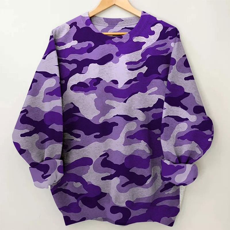Women's Purple Camouflage Print Round Neck Sweatshirt