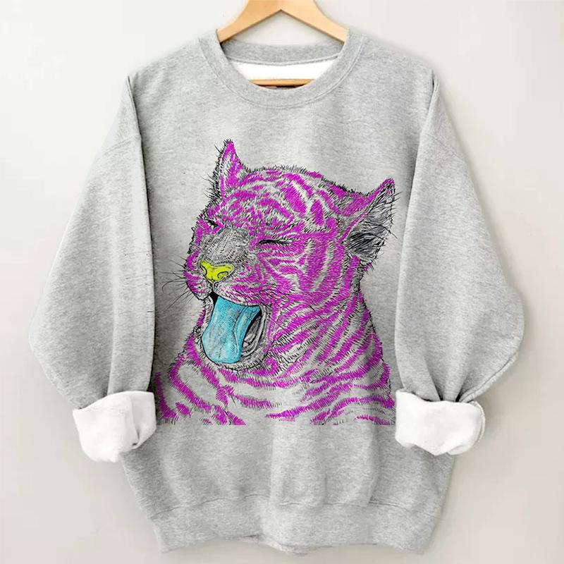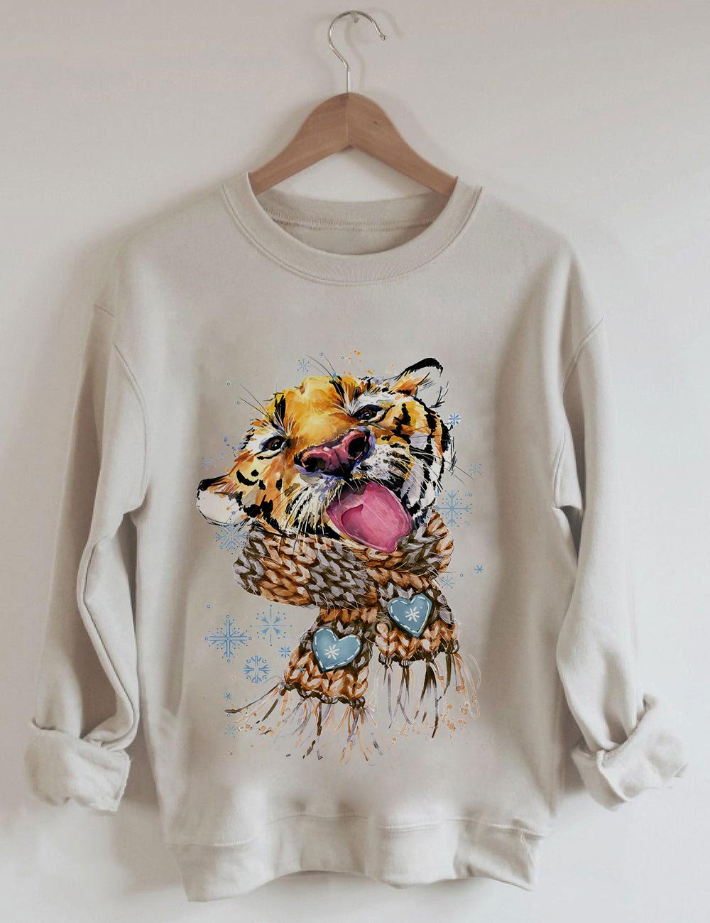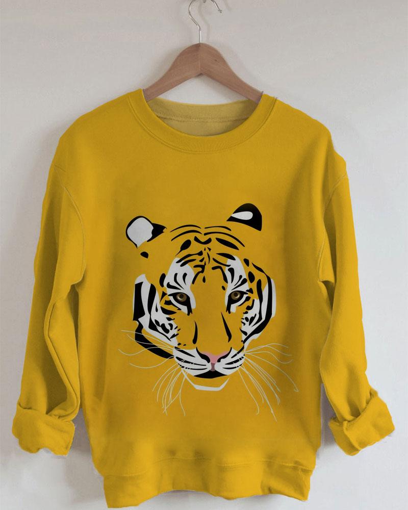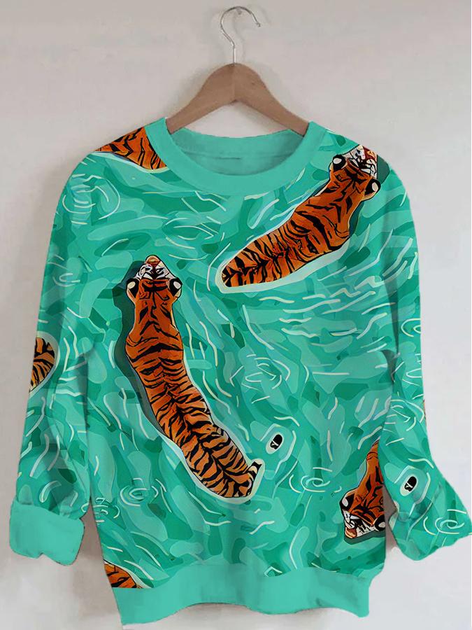 Women's Tiger Print Long Sleeve Round Neck Sweatshirt
