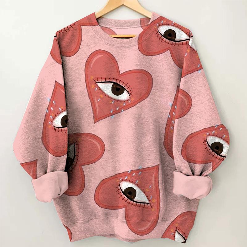 Women's Red Love Eyes Print Round Neck Sweatshirt