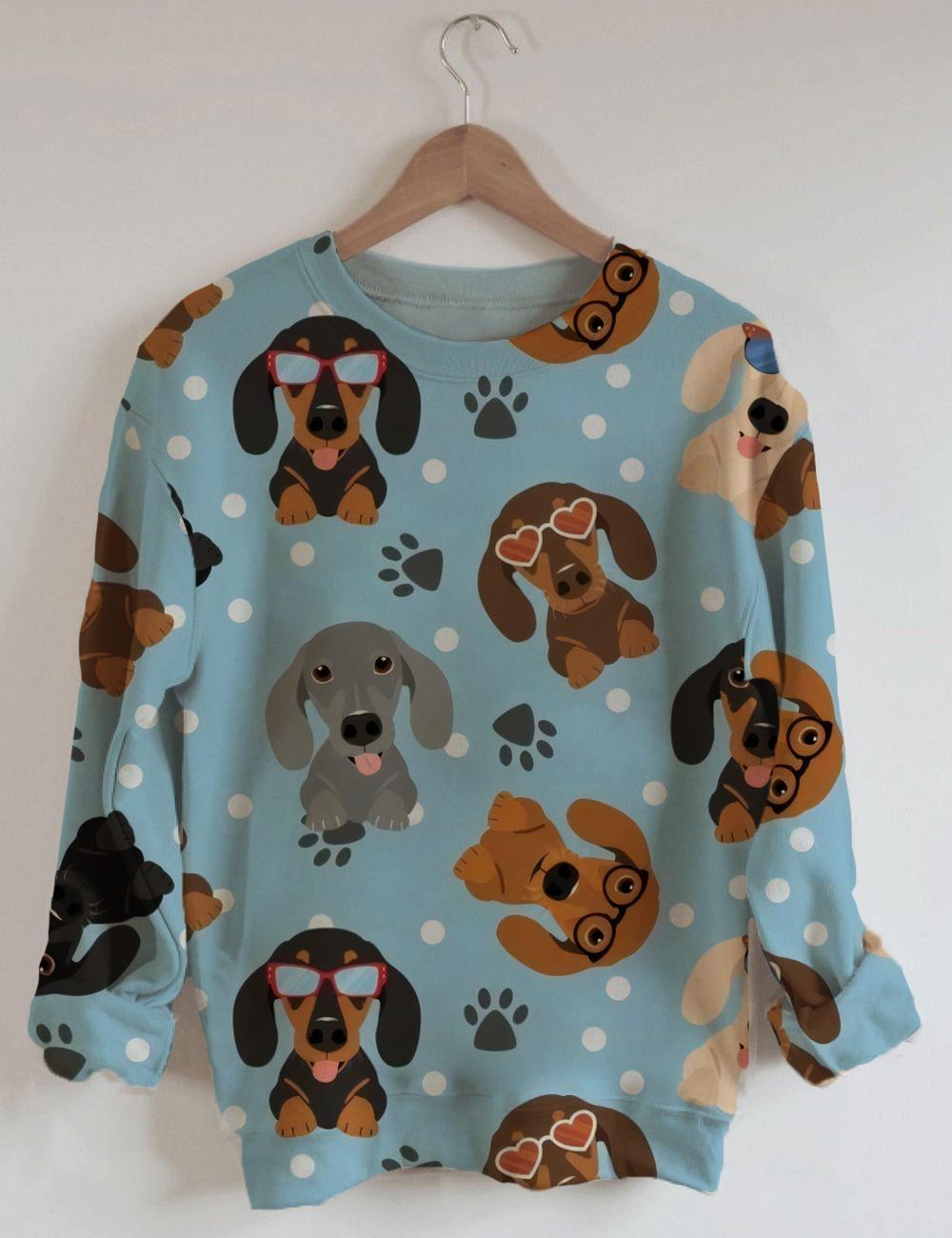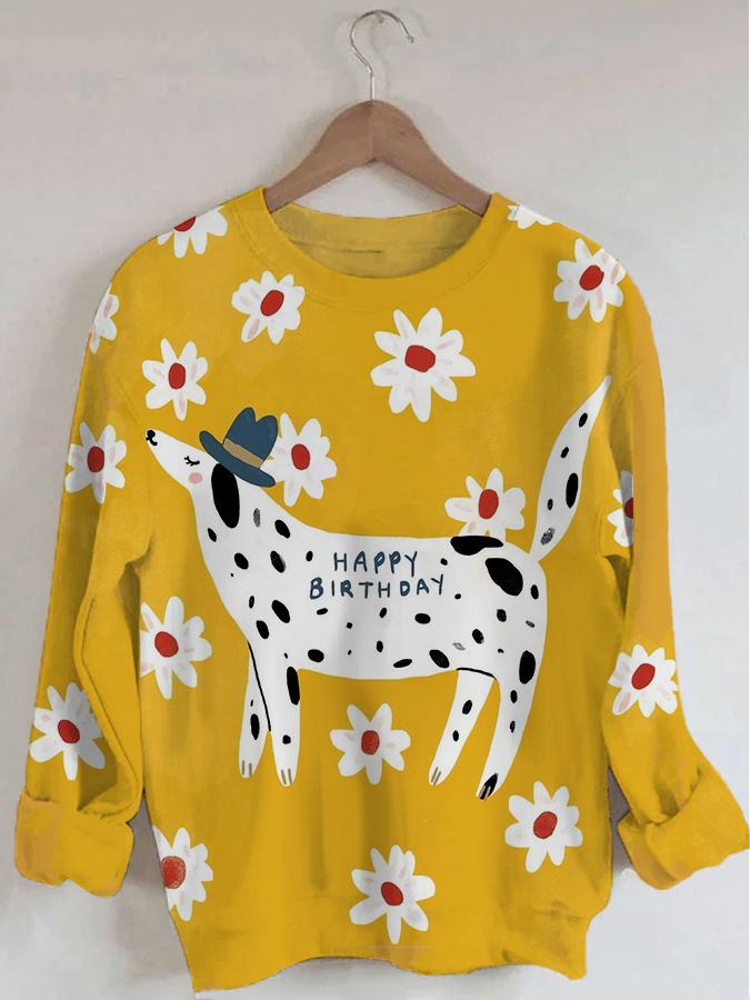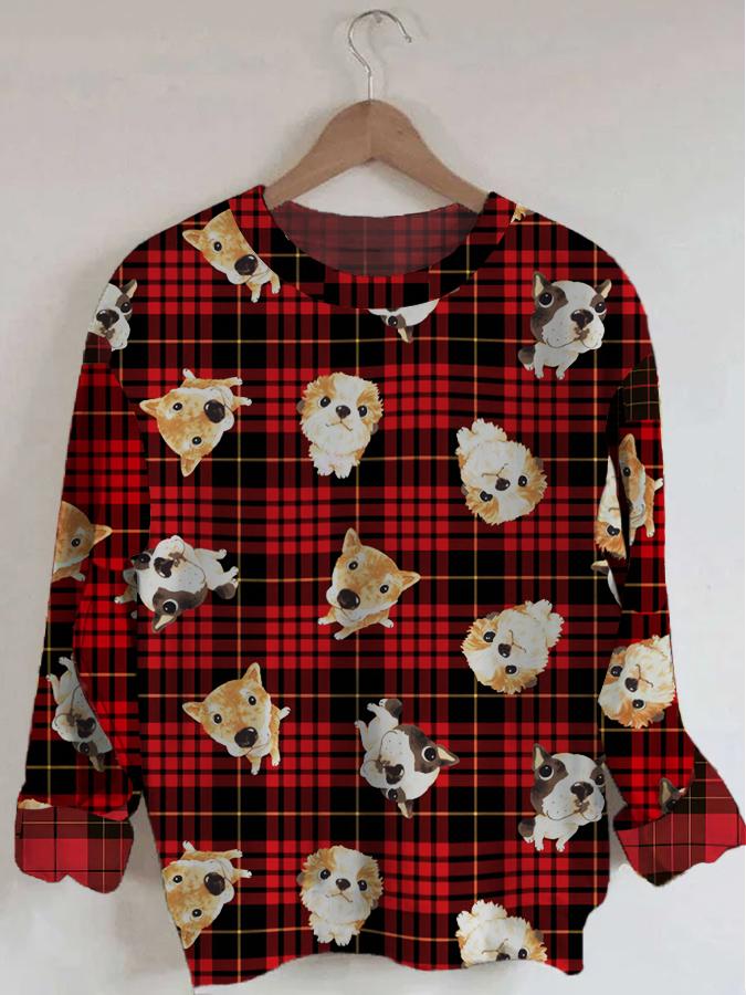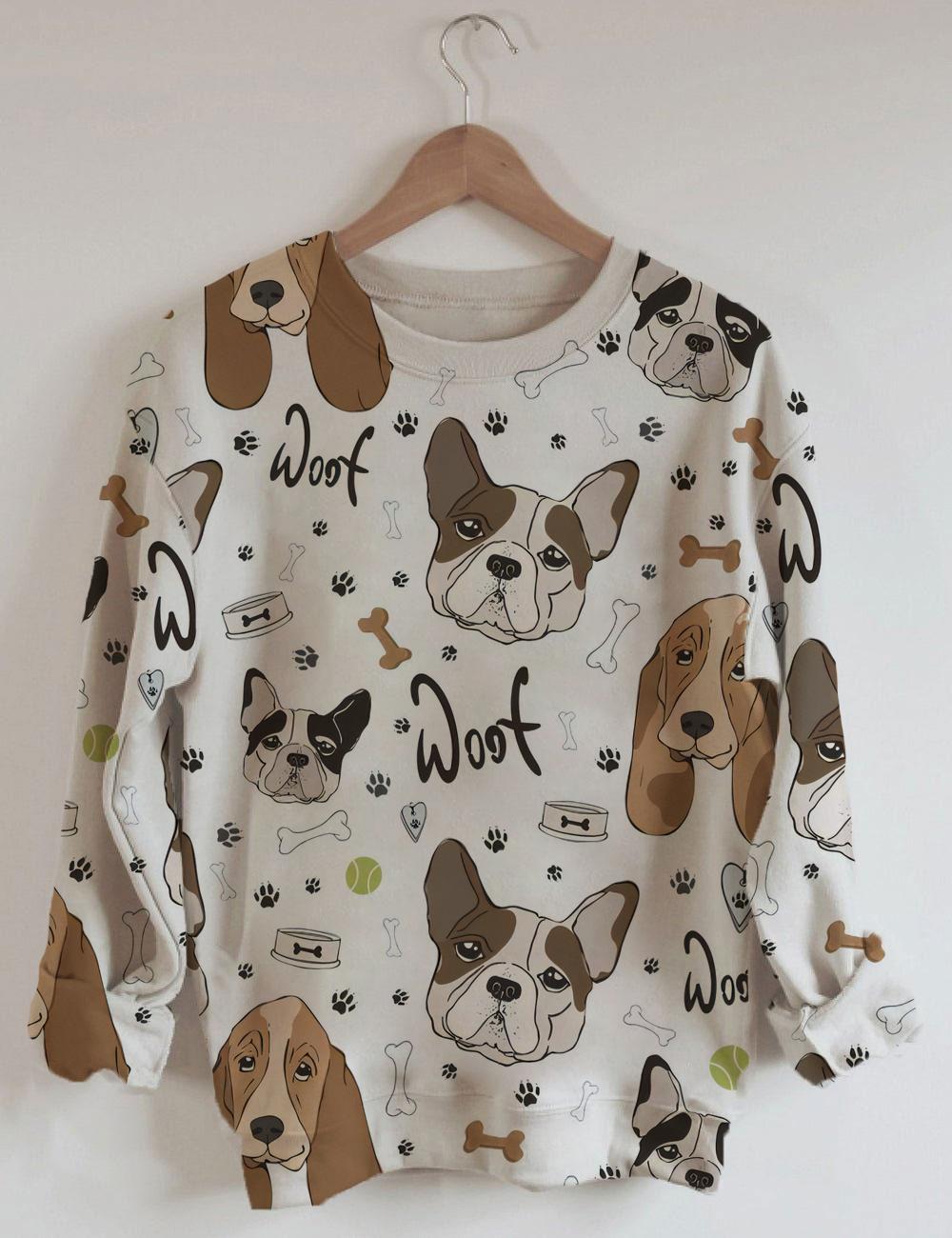 Women's Dog Print Long Sleeve Round Neck Sweatshirt