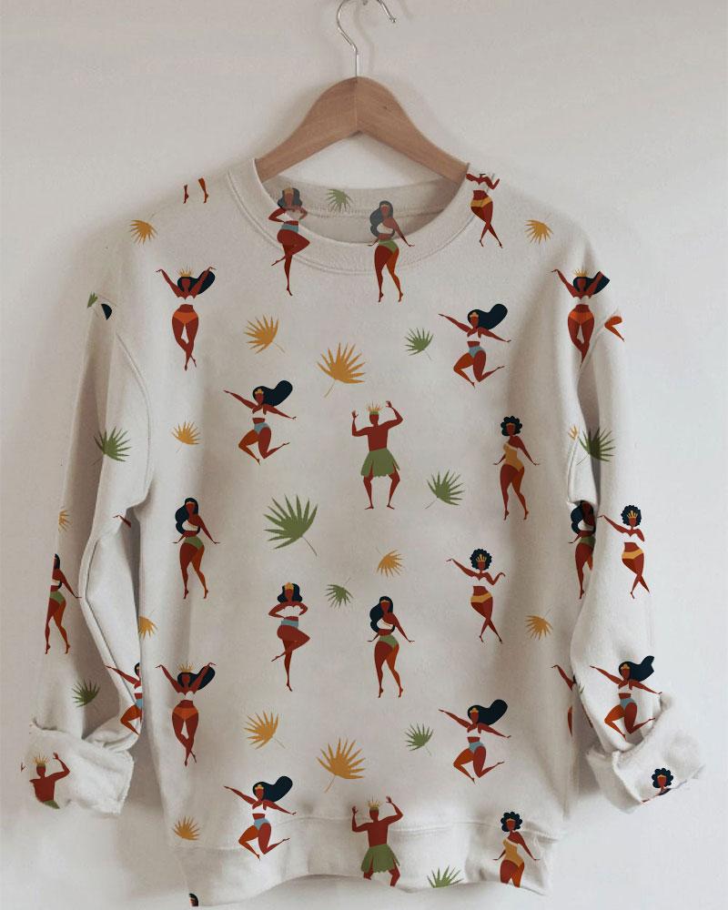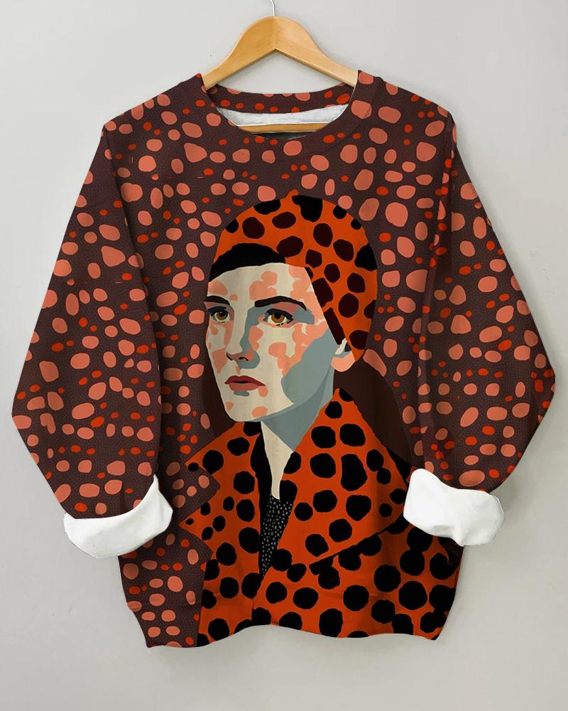 Women’s People Printing Long Sleeve Round Neck Sweatshirt
