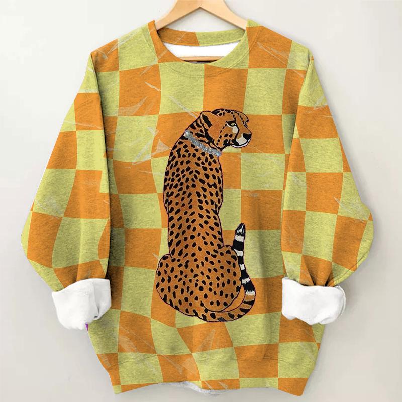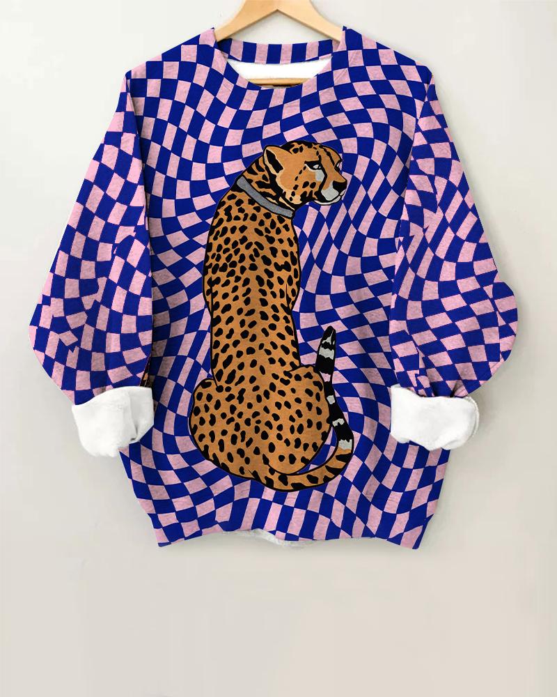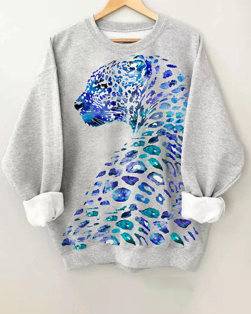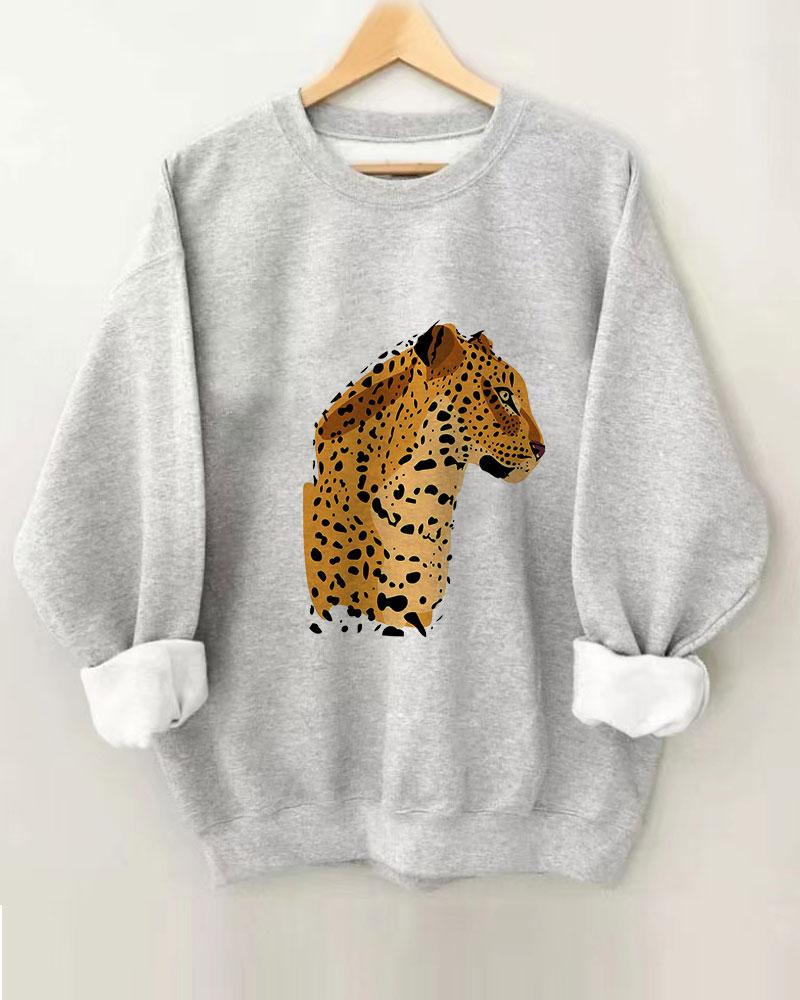 Women's Cheetah Art Print Round Neck Long Sleeve Sweatshirt