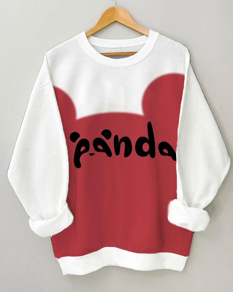 Women’s Panda Printing Long Sleeve Round Neck Sweatshirt