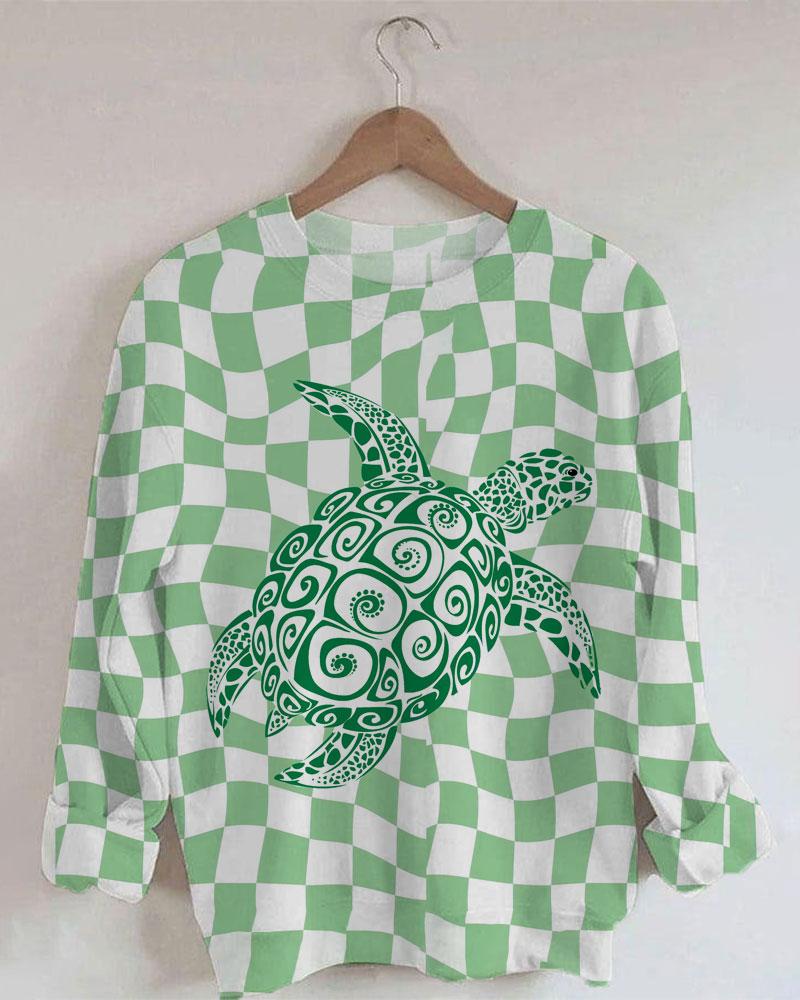 Women's Turtle Print Long Sleeve Round Neck Sweatshirt