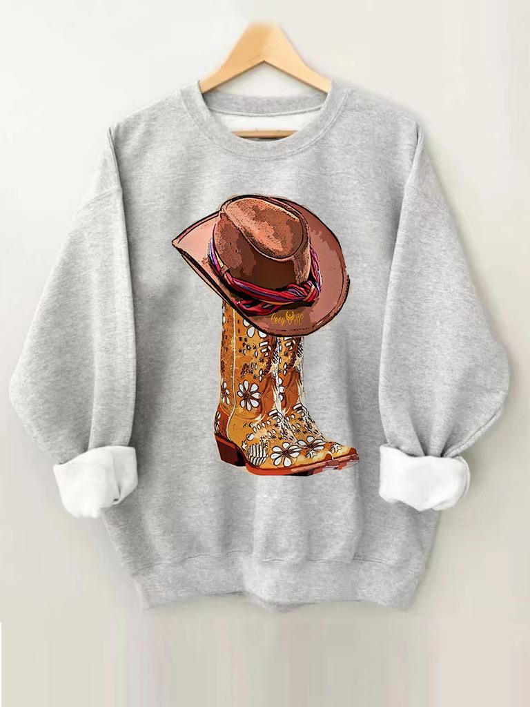 Women's Cowboy Hats And Boots Print Round Neck Sweatshirt