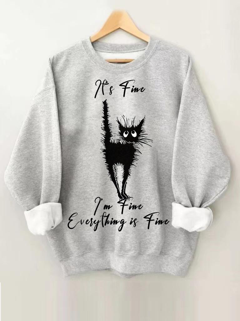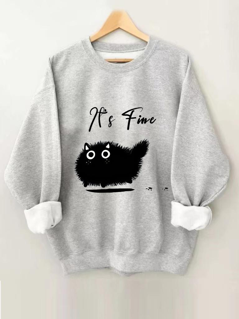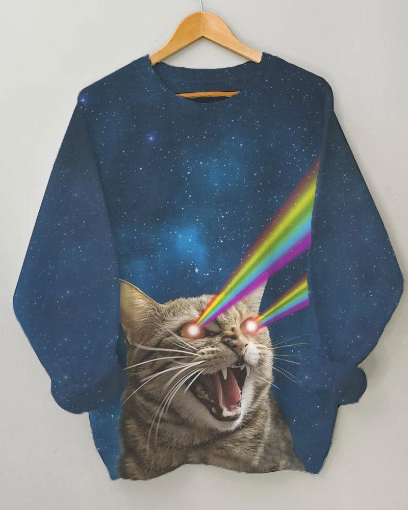 Women’s Cat Printing Long Sleeve Round Neck Sweatshirt