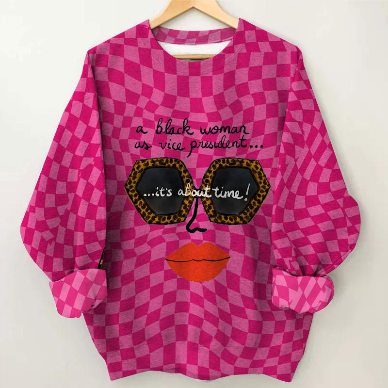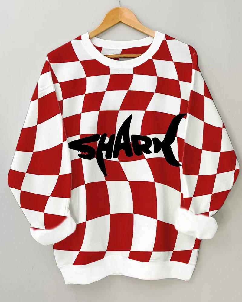 Women’s Checkered Printing Long Sleeve Round Neck Sweatshirt