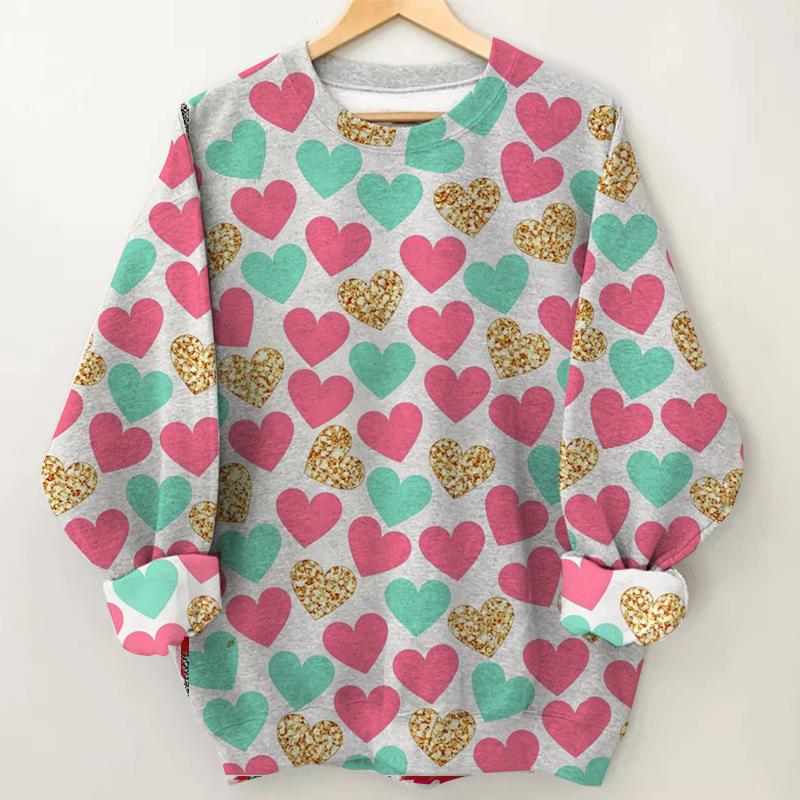 Women's Colorful Heart Print Round Neck Sweatshirt