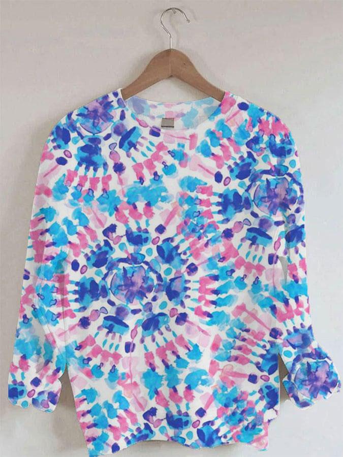 Women's Tie Dye Blue And Pink Texture Art Print Sweatshirt