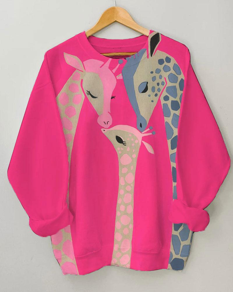 Women’s Giraffe Printing Long Sleeve Round Neck Sweatshirt