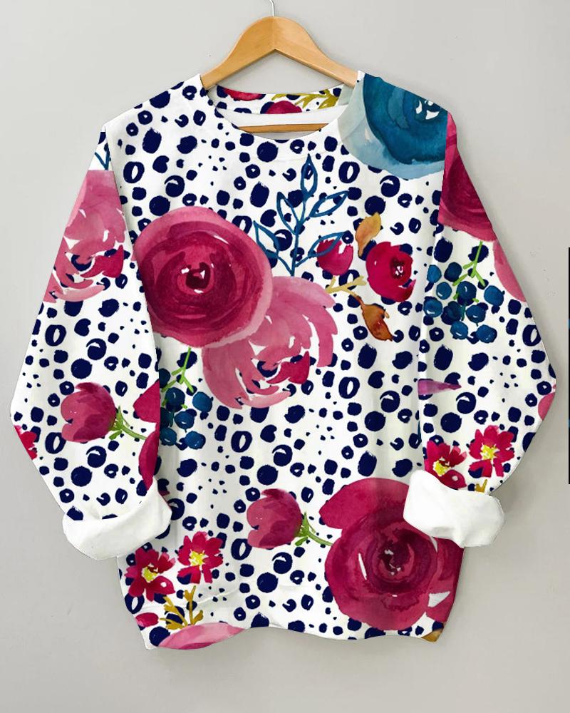 Women’s Flowers Printing Long Sleeve Round Neck Sweatshirt