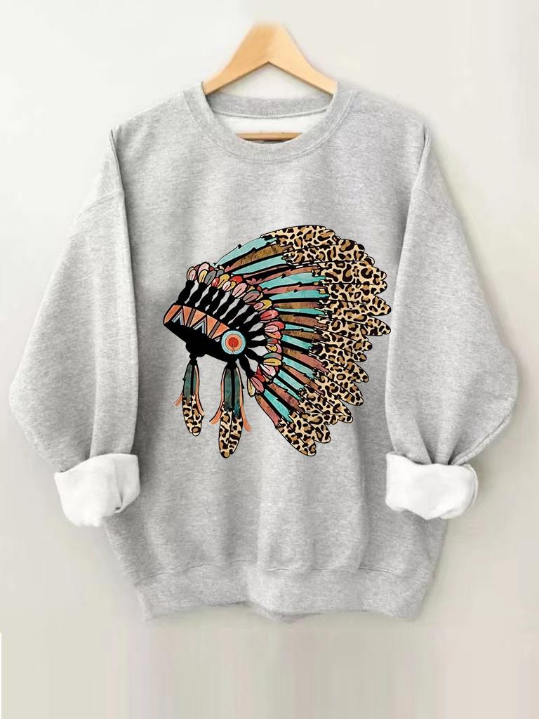 Women's Eagle Feather Crown Print Round Neck Sweatshirt