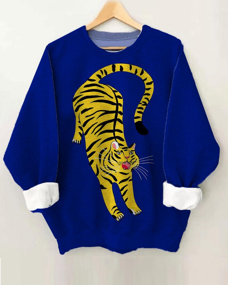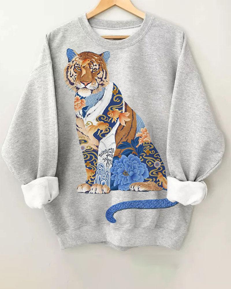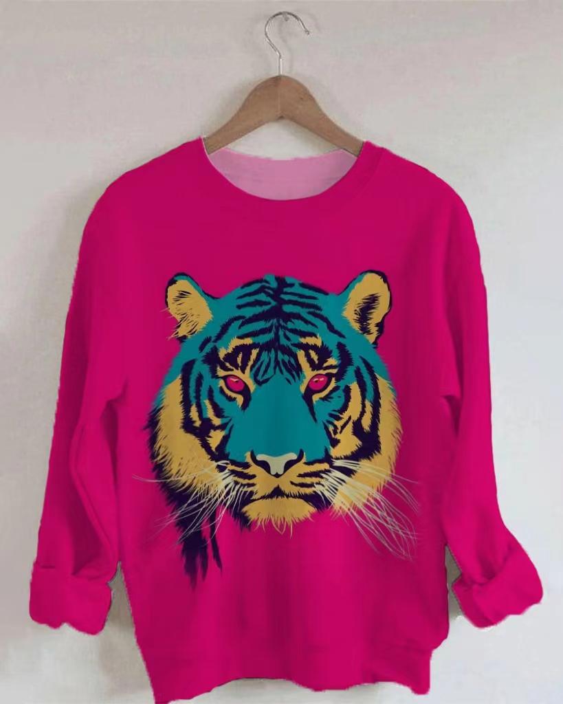 Women's Tiger Print Long Sleeve Round Neck Sweatshirt