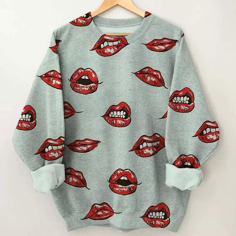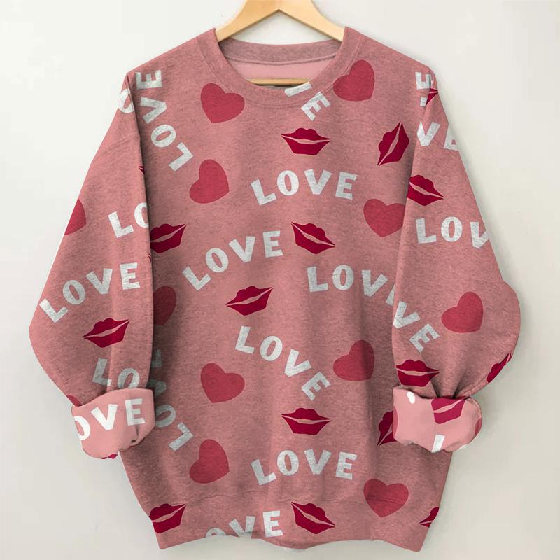 Women's Red Heart Lip Letter Print Round Neck Sweatshirt