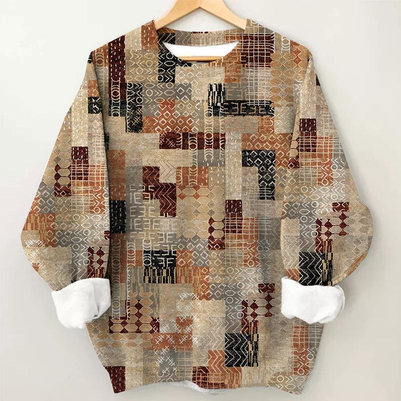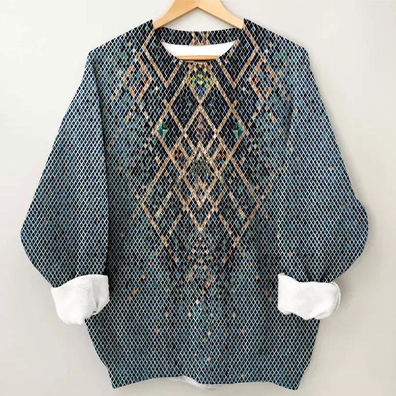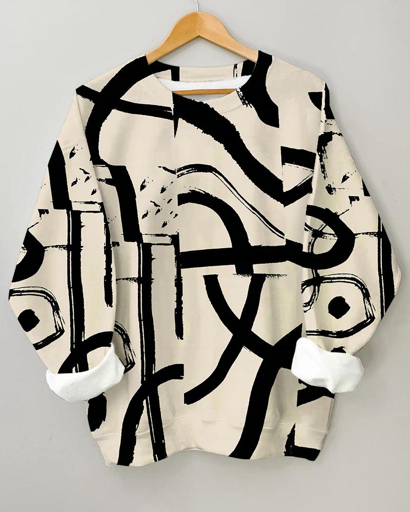 Women’s Geometric Ar Print Long Sleeve Round Neck Sweatshirt