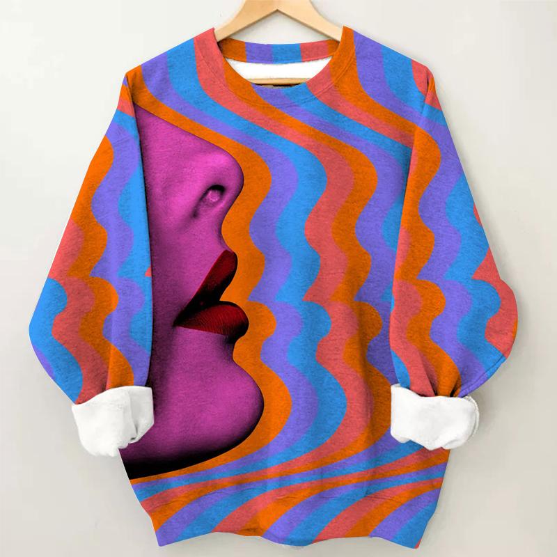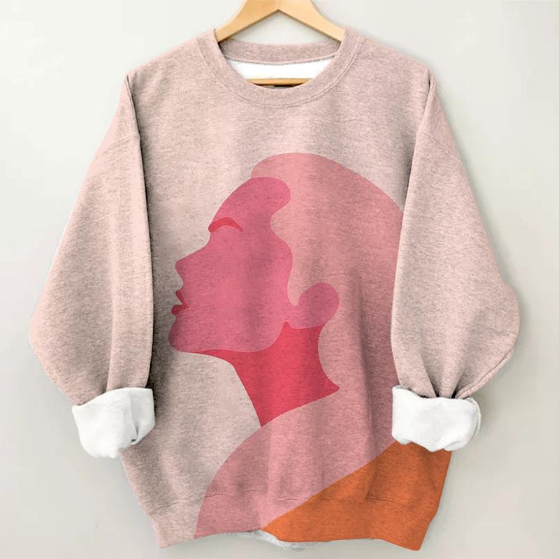 Women’s Self-Portrait Printing Long Sleeve Round Neck Sweatshirt