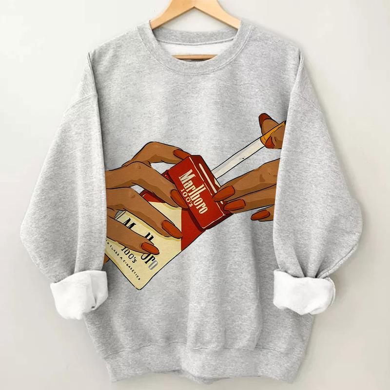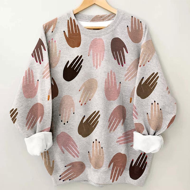 Women’s Hands Printing Long Sleeve Round Neck Sweatshirt
