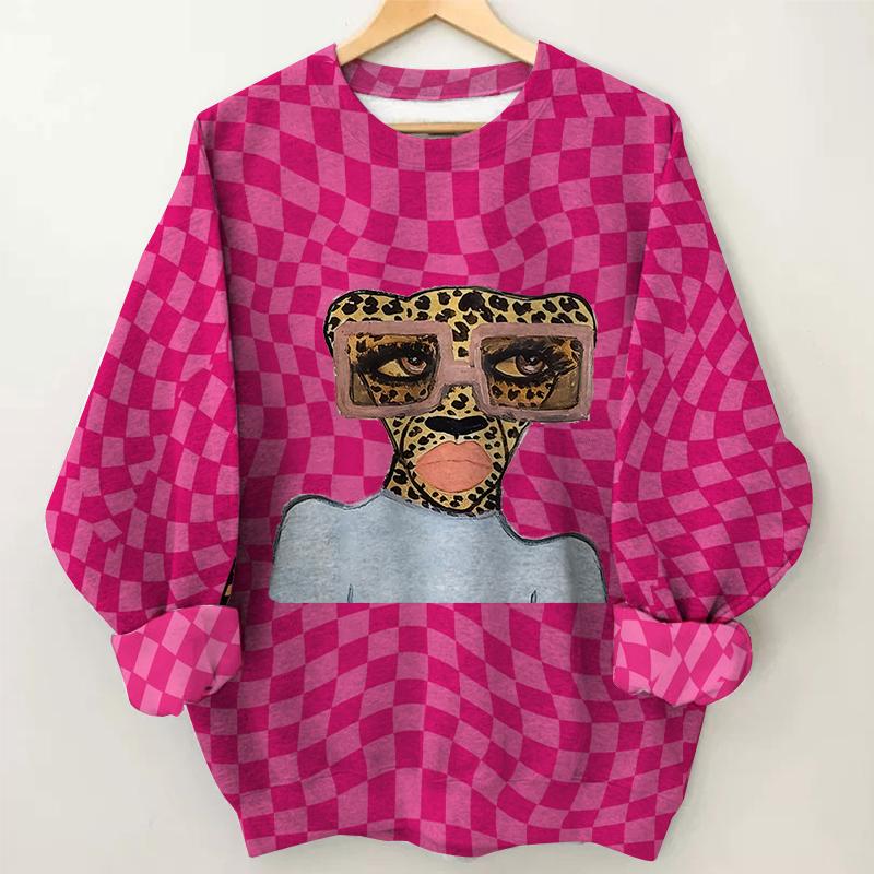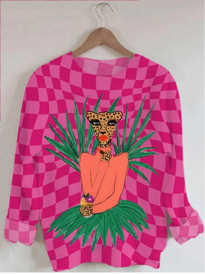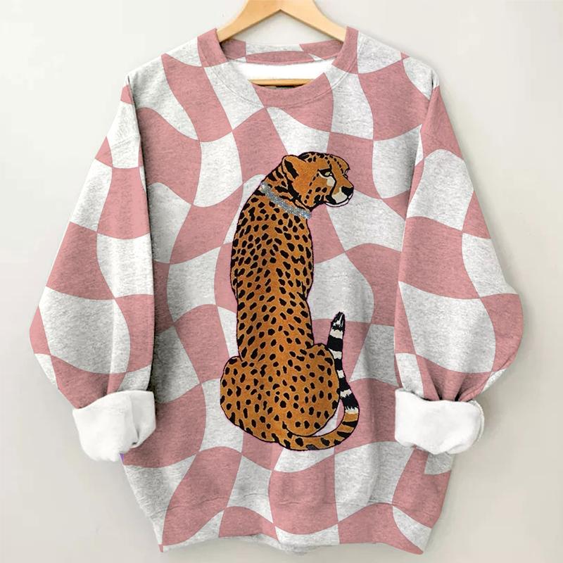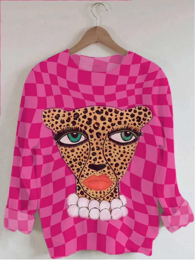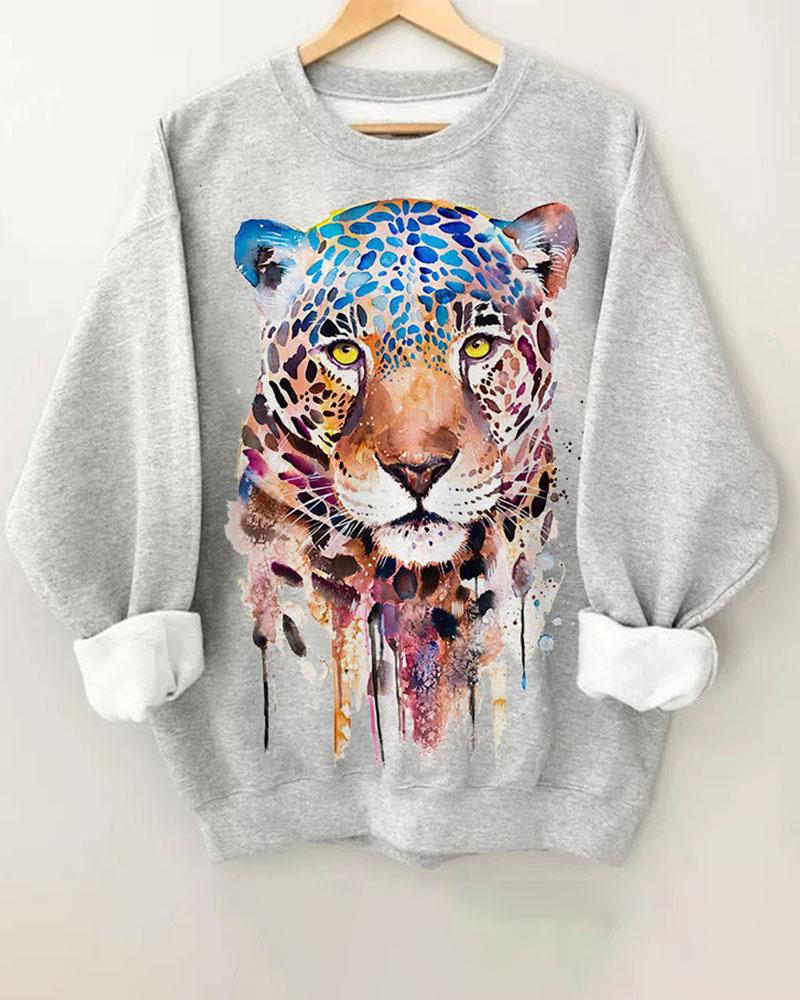 Women's Cheetah Art Print Round Neck Long Sleeve Sweatshirt