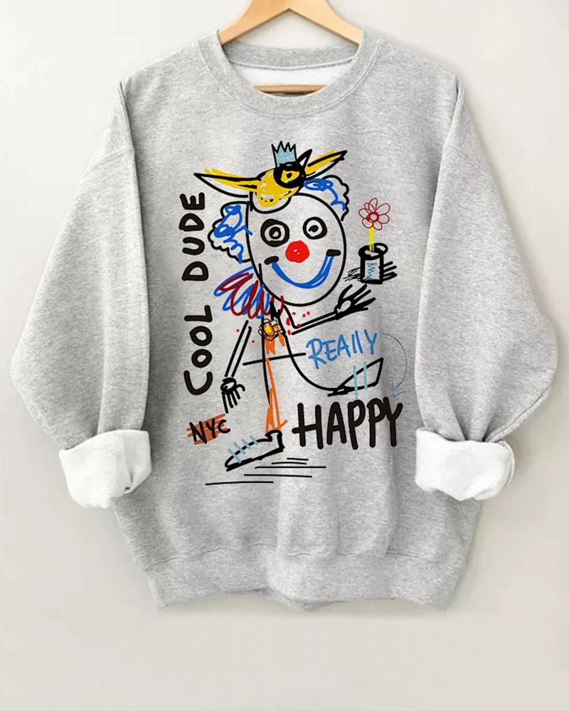 Women's Cool Dude Really Happy Print Long Sleeve Round Neck Sweatshirt