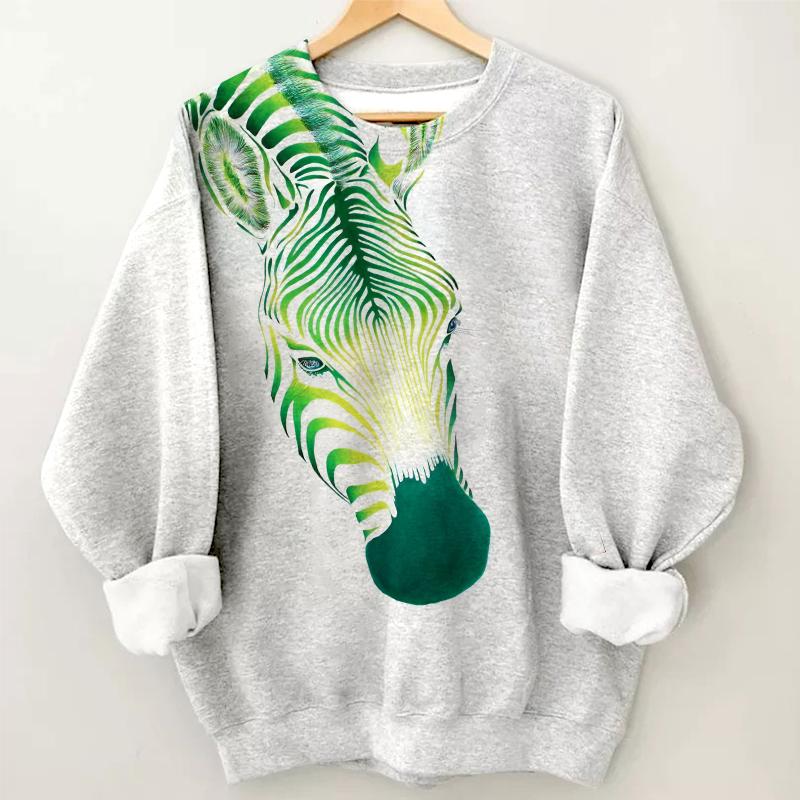 Women’s zebra Printing Long Sleeve Round Neck Sweatshirt