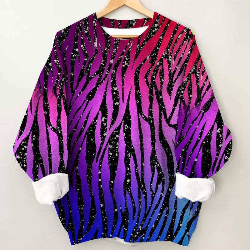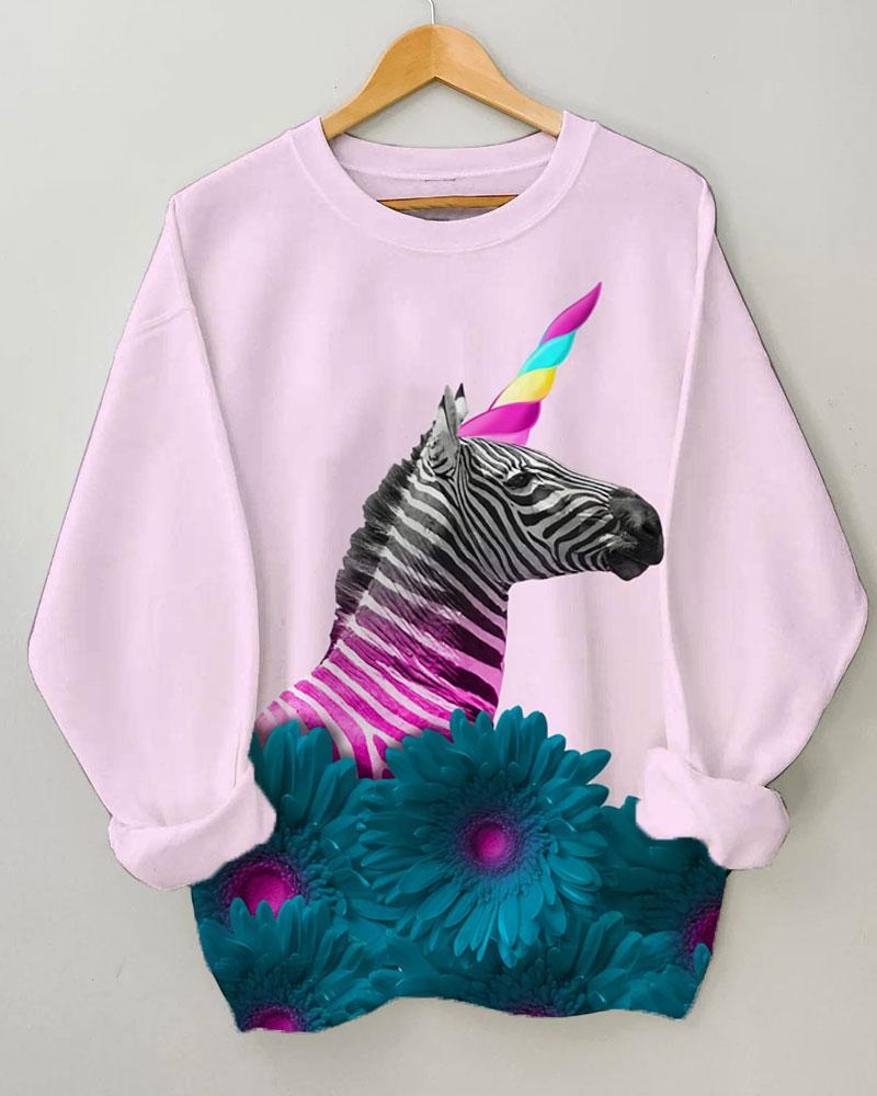 Women's Zebra Print Round Neck Long Sleeve Sweatshirt