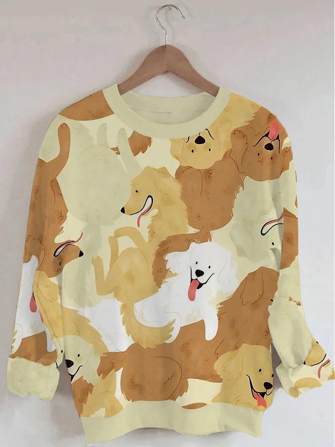 Women's Cute Dog Print Long Sleeve Round Neck Sweatshirt