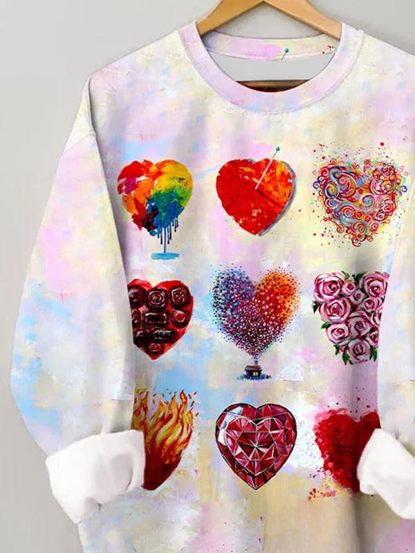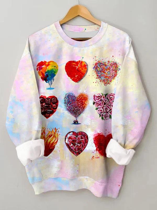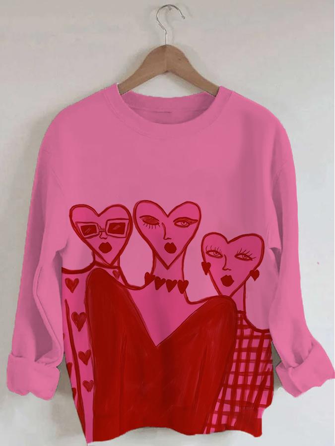 Women's Valentine's Day Art Print Long Sleeve Round Neck Sweatshirt