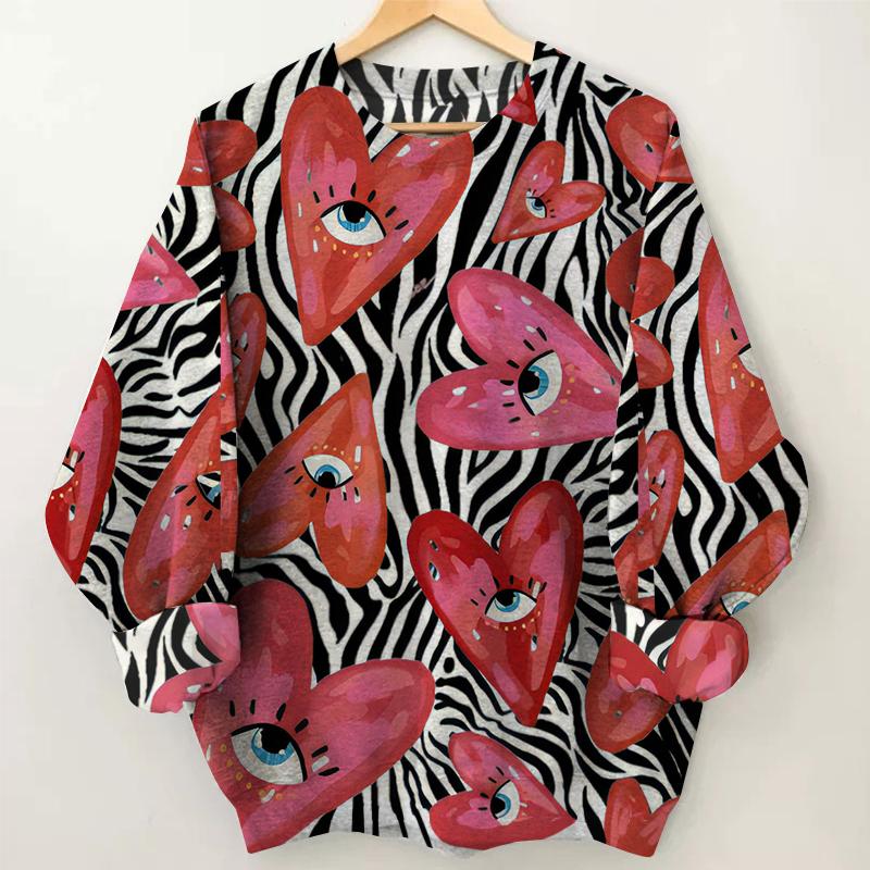 Women's Red Heart Eyes Print Round Neck Sweatshirt