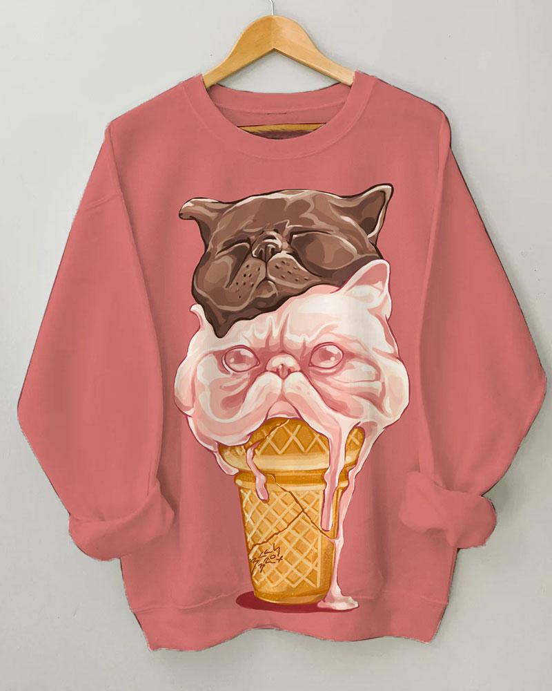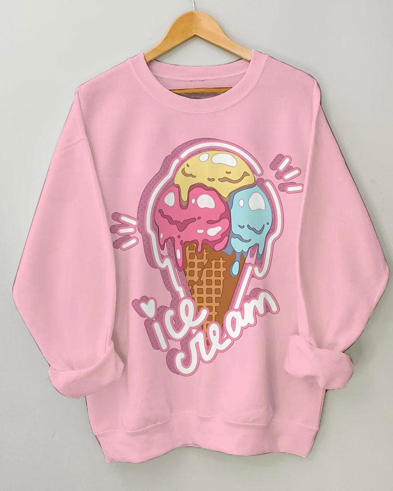 Women’s Ice Cream Printing Long Sleeve Round Neck Sweatshirt