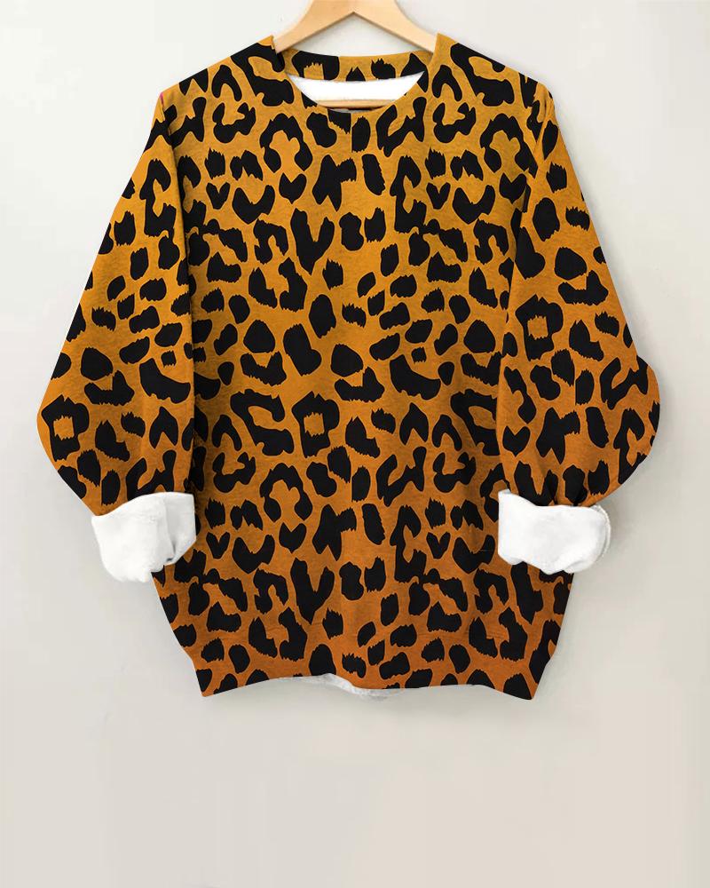 Women's Leopard Print Long Sleeve Round Neck Sweatshirt